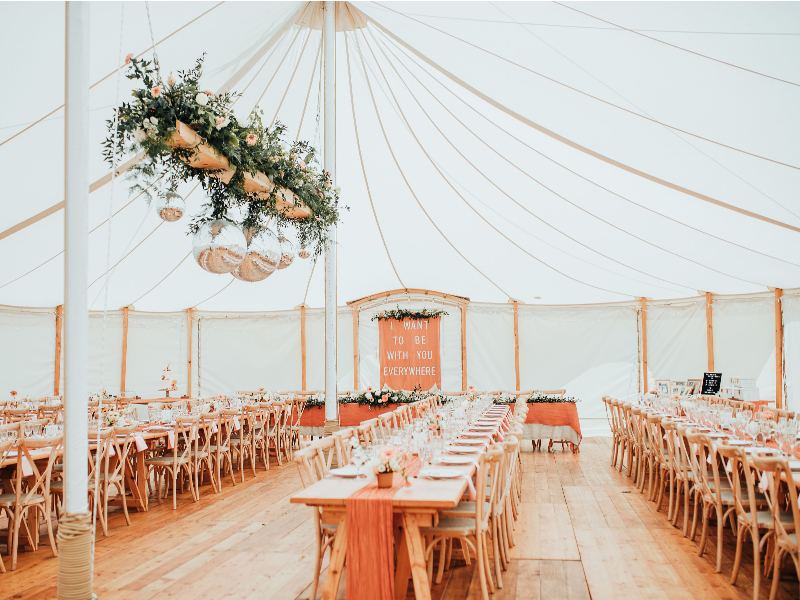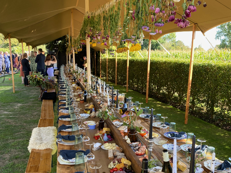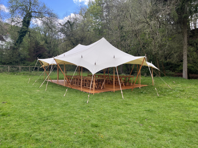 I can't recommend Roland and his stunning marquees highly enough. We hired the beautiful star marquee, the reception tent and floor, bamboo festoon lighting poles and fire pit for our wedding in the Gower in July.